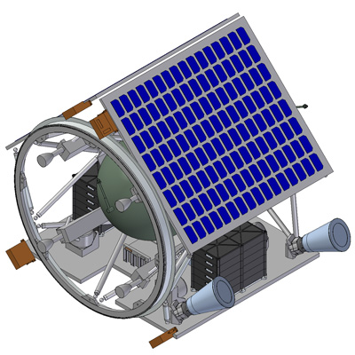 The satellite’s weight and measurements set strict limits upon its useable load. The cubical satellite will weigh around 190 kg, and the sides measure 70 centimetres.